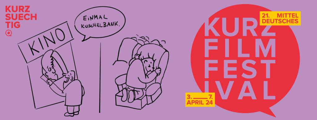 Vom 3. bis 7. April präsentiert das KURZSUECHTIG wieder die besten Kurzfilme aus Mitteldeutschland in der Schaubühne Lindenfels. Wir freuen uns sehr auf die neuesten Produktionen junger Filmschaffender aus der Region in den Kategorien Animation, DOK, Fiktion, Experimental sowie Filmmusik & Sounddesign.