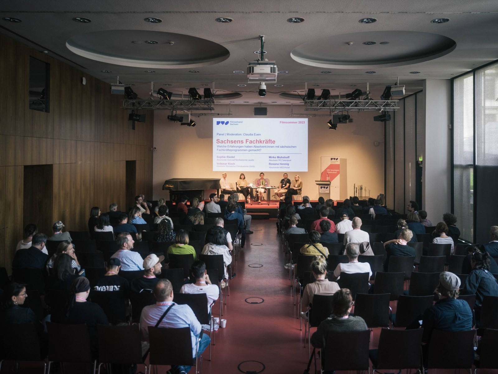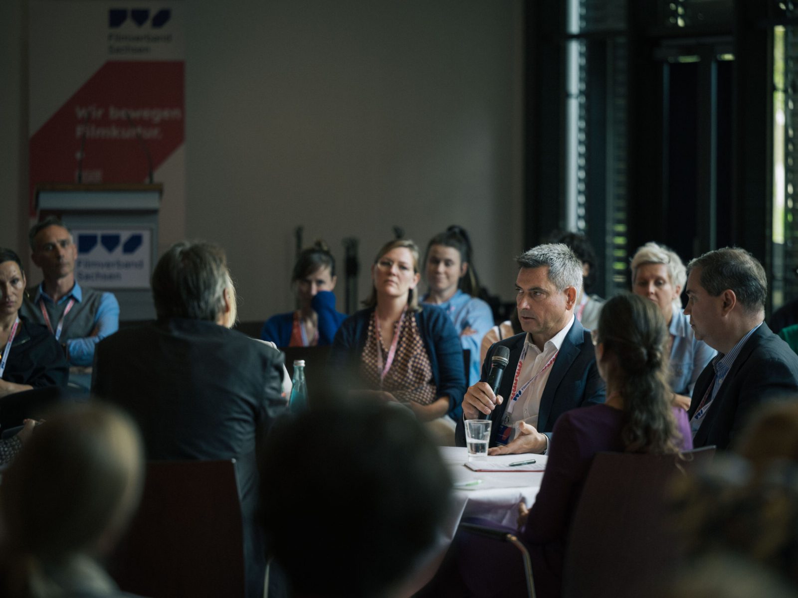 Nach der Begrüßung durch den 1. Vorstand des Filmverbandes, Joachim Günther, beleuchteten vier Diskussionsrunden Sachsens Filmlandschaft genauer. Die Thüringer Filmproduzentin Tanja Georgieva-Waldhauer brachte mit einem Impulsvortrag die Brisanz der aktuellen Situation für regionale Filmschaffende durch persönliche, beunruhigende Erfahrungen auf den Punkt.